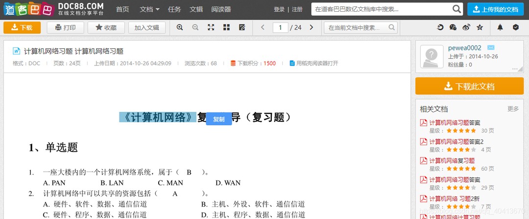 首先来看一下效果图,依旧是以某度文库、道客某某为例展示效果,点击复制按钮即可成功复制。